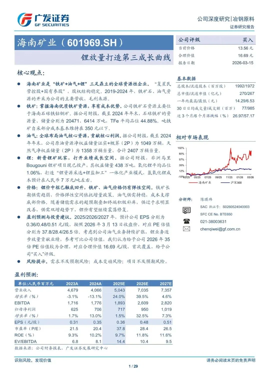 回复暗号:海南矿业(601969)锂放量打造第三成长曲线-260315-广发证券-29页