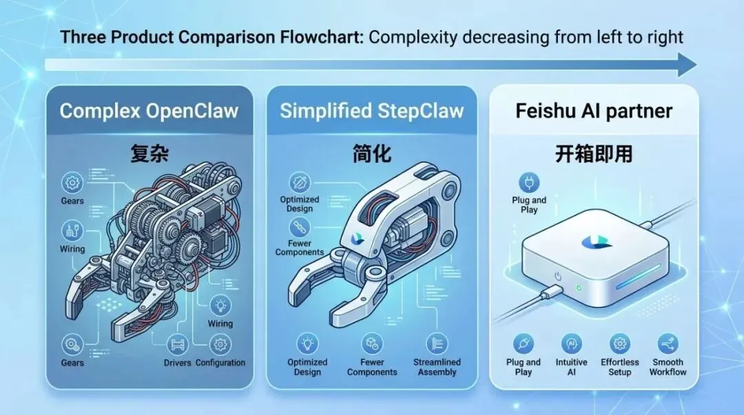 StepClaw/飞书路线:产品化、开箱即用、平台整合。