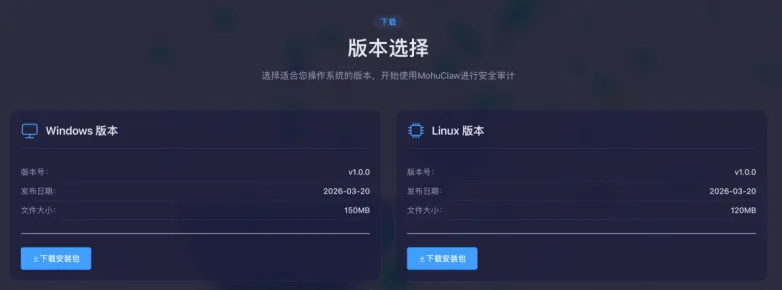 地址 https://aimohu.com/claw ,根据你的操作系统选择版本: