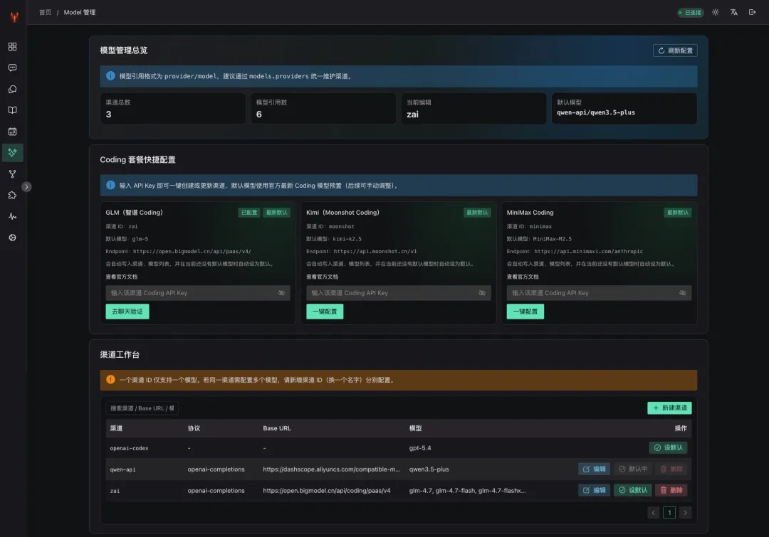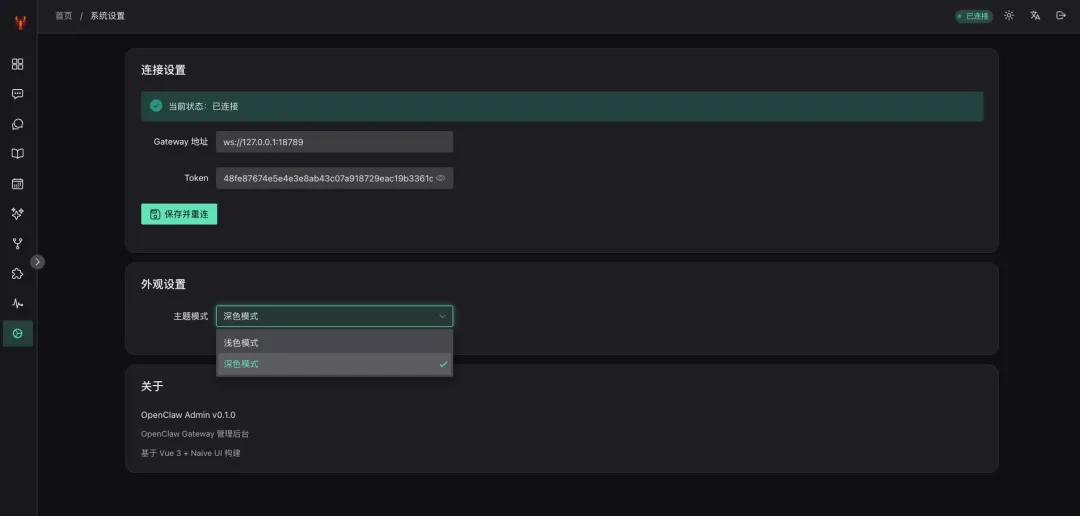 这是一套用 Vue 3 + Naive UI 重新写的 OpenClaw 管理界面。