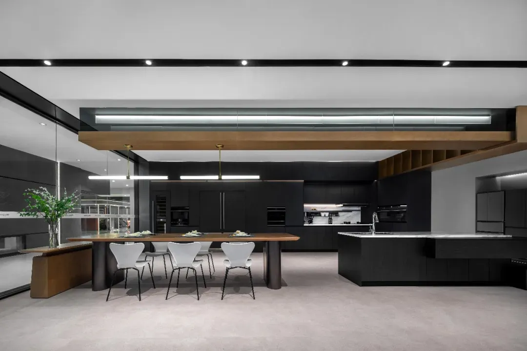 MOC has envisioned a unified kitchen and dining zone where spatial design and product functionality merge cohesively.