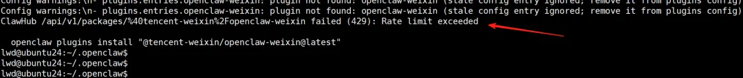 openclaw更新到2026.3.24后,做了个比较大的改动,所有插件安装必须经过ClawHub进行安装。目前ClawHub做了速率限制,所以一次安装不成功,可能需要多试几次。
