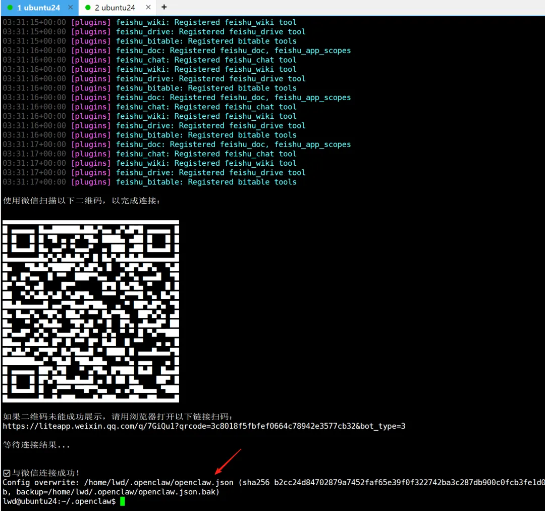 openclaw channels login --channel openclaw-weixin扫描微信二维码: