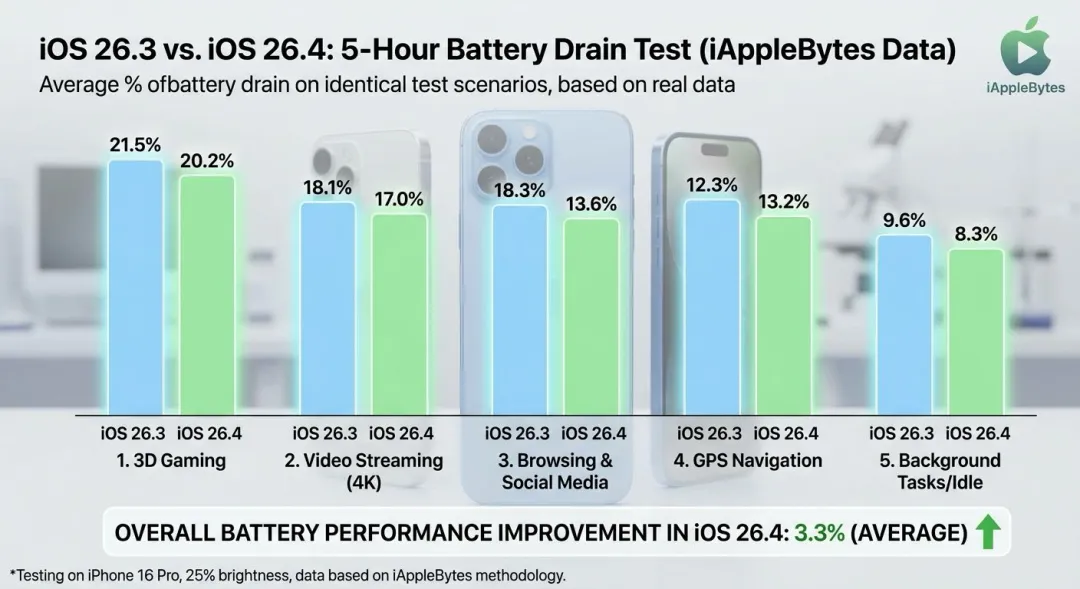 iOS 26.4 Beta 2(3 月 5 日发布)被誉为"稳定优化更新",主要改善包括: