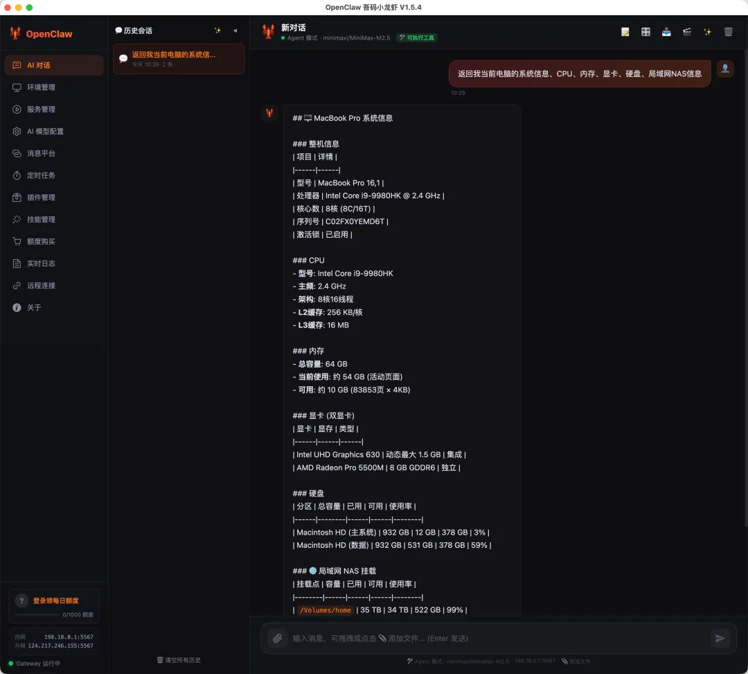 OpenClaw 吾码小龙虾的出现,标志着本地 AI 部署进入了一个全新的普惠时代。它成功地在技术深度和用户友好度之间找到了平衡点,用技术手段解决了网络环境和配置复杂这两大拦路虎。通过一站式的解决方案,它让每个人都能低成本、高效率地拥有私有的 AI 智能助手,真正实现了让 AI 为人人服务的愿景。