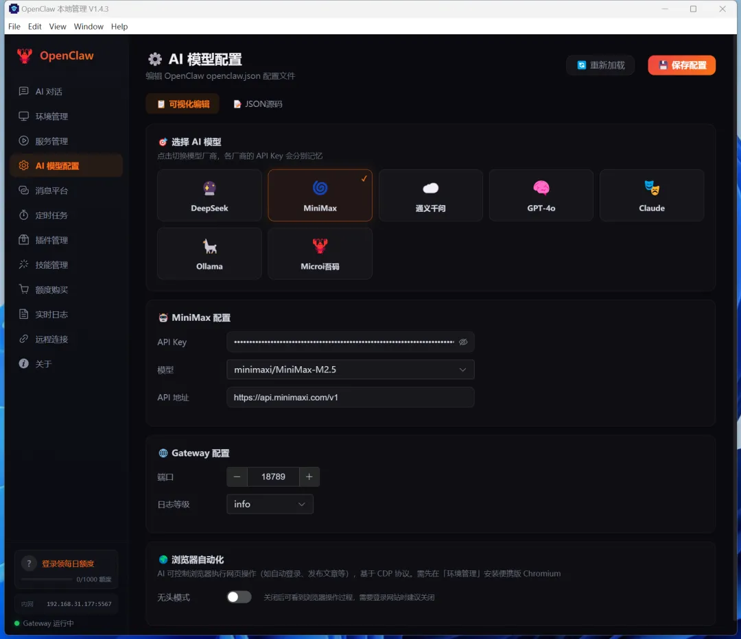 核心定位是作为 OpenClaw 引擎的可视化管理器,将原本需要专业开发者才能驾驭的 AI 网关服务,转化为普通用户也能轻松操作的桌面软件。无论是完全不懂代码的技术小白,还是希望提高开发效率的资深工程师,都可以通过它实现零门槛部署。