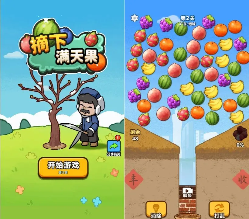 全新的消除玩法,不一样的消除体验,两个水果在一起就能消除,快来试试您的身手!