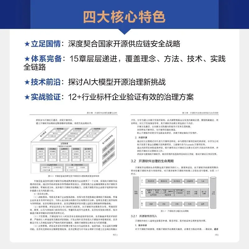一是立足国家战略需求,体现科技自立自强的时代呼唤。本书的编写紧密契合国家发展大势,书中深入探讨的开源供应链安全、关键技术可控等议题,与国家推动高质量发展的战略部署同频共振。
