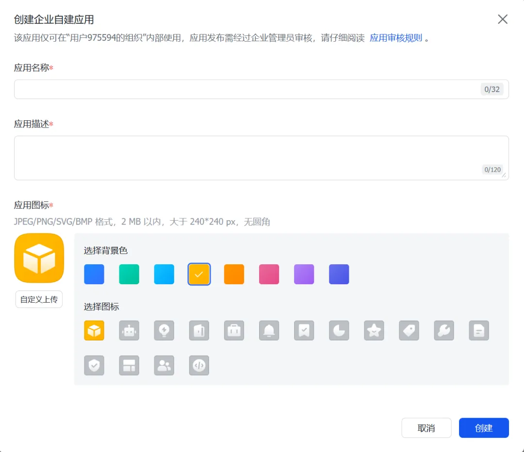 进入创建企业自建应用