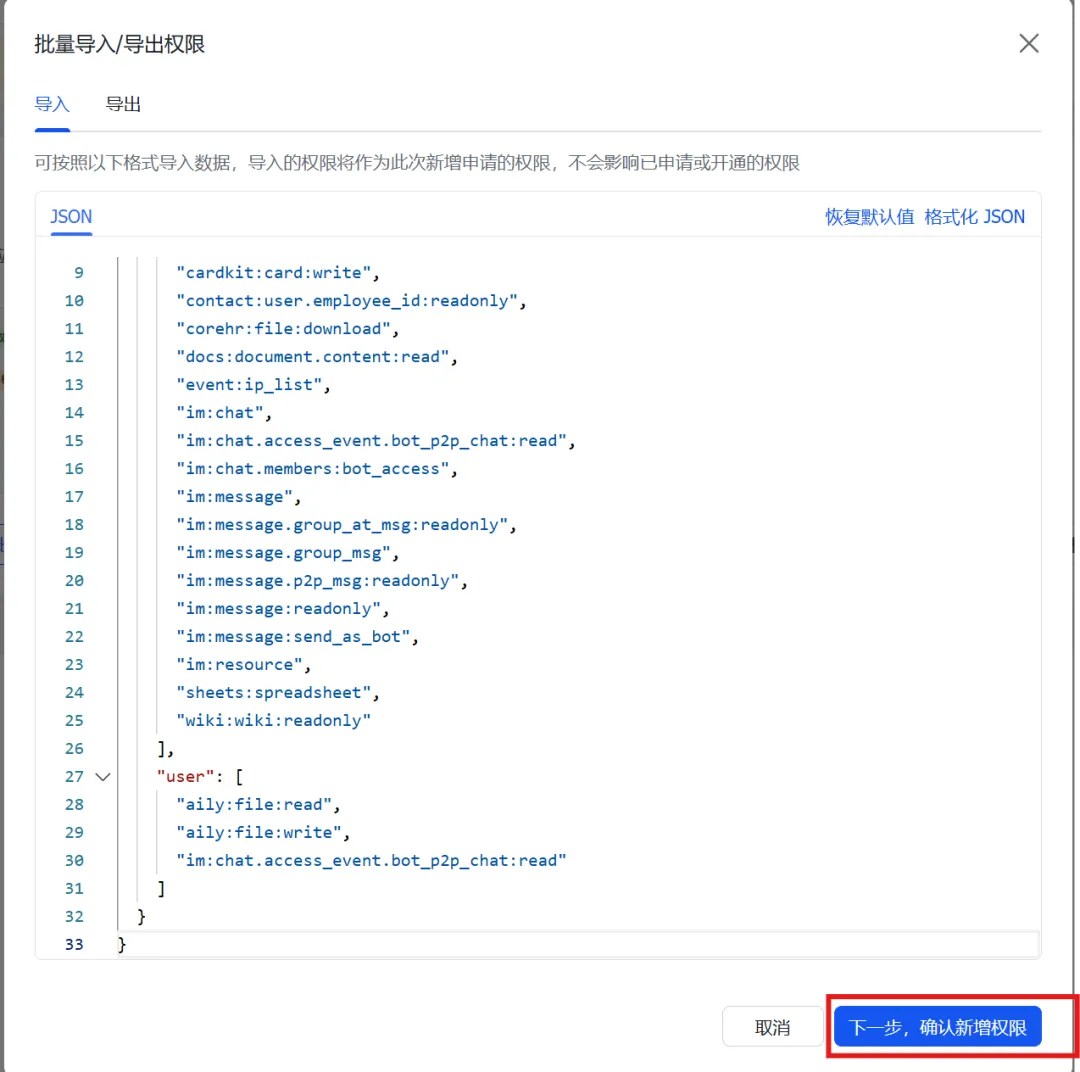 接着选择申请开通,点击确认,这样我们的权限就都保存好了