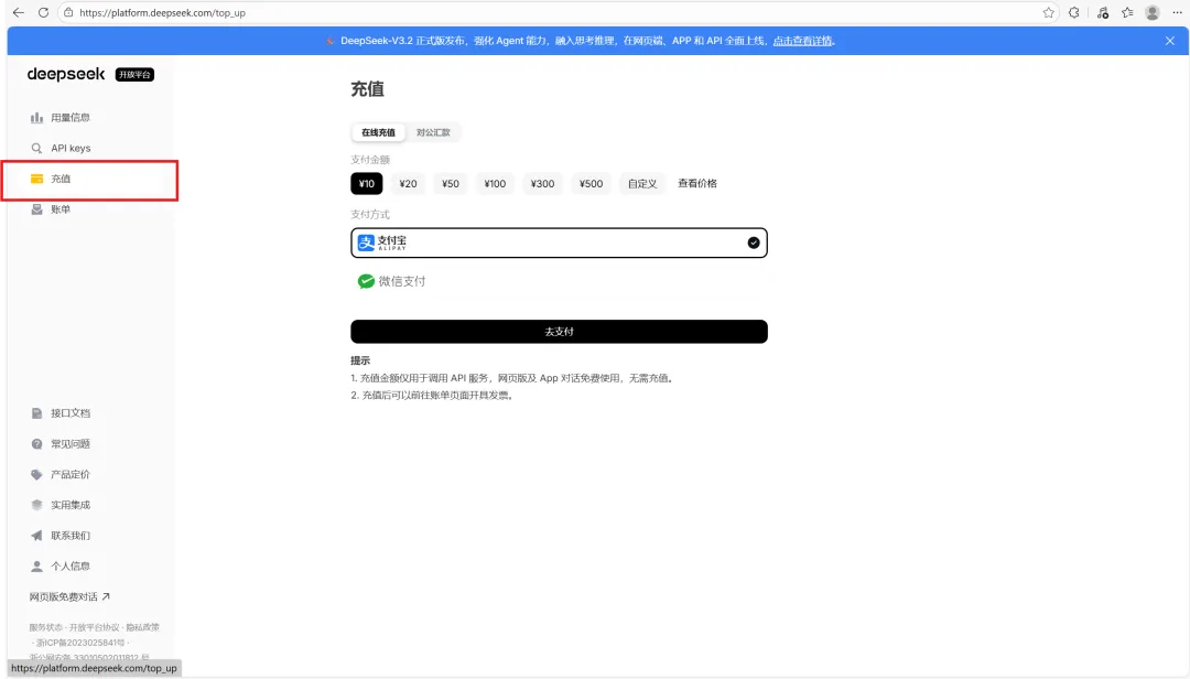 接下来我们需要DeepSeek API key