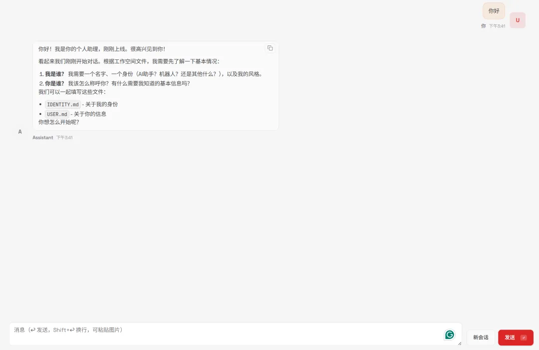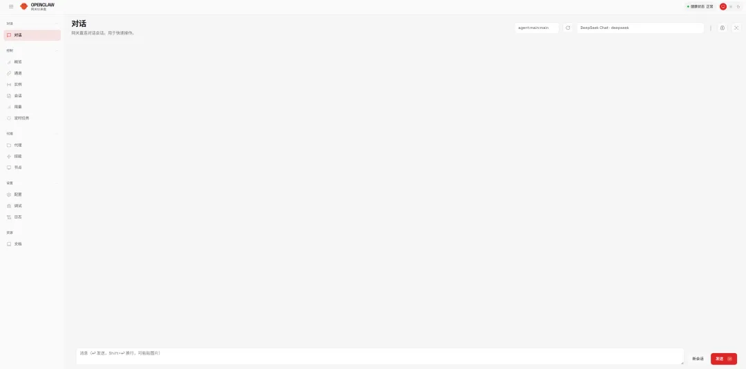 openclaw-cn gateway --port 18789 --verbose稍等片刻,然后在浏览器中输入对应的网址:127.0.0.1:18789,就可以打开OpenClaw可视化界面并进行对话了!!!