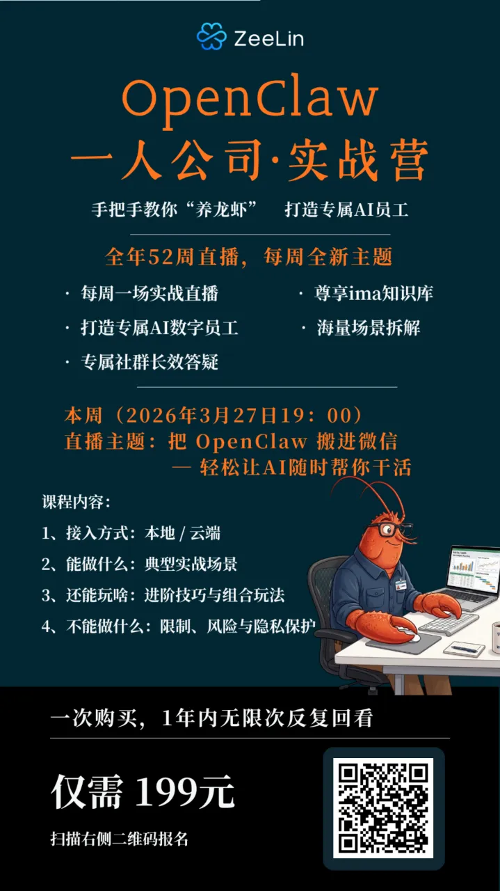 我们之前做过 OpenClaw 的 3 天实战课,反馈很好。