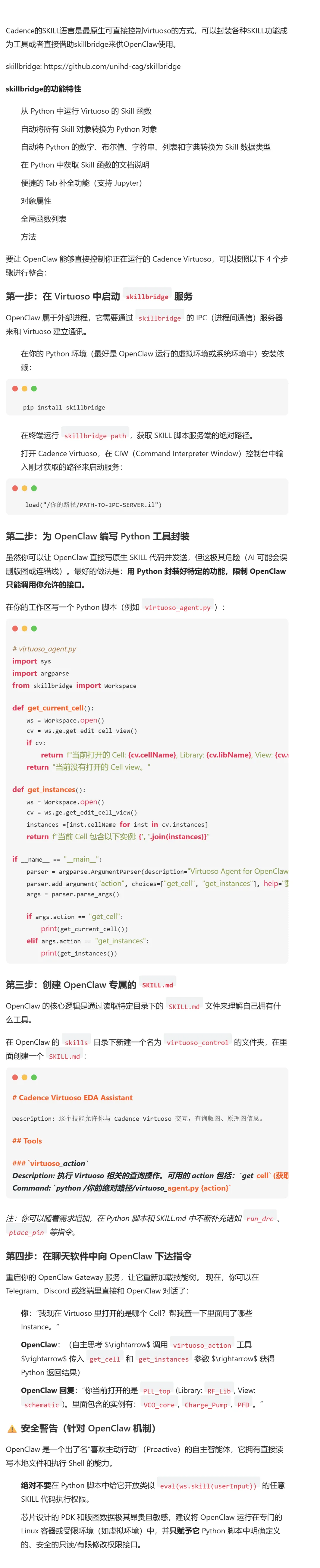 OpenClaw小龙虾如何调用Cadence Virtuoso自动做模拟电路设计呢?阅读推荐粉笔板书战神—阳明交通大学陈振芳教授与他的《电子学》课程芯片劳模拉扎维“擎芯”免费流片计划AnaFlow:基于多智能体LLM的模拟电路设计自动化新范式从ICCAD-Expo 2025魏少军教授讲话看EDA创业的终局:上岸、淘汰,还是被整合?14nm Finfet工艺下自动版图生成框架实现的500-MS/s 8bit SAR ADC2026 IEEE Fellow 微电子与芯片领域入选学者深度盘点【大神实测】模拟电路祖师爷Razavi亲自下场“真实”ChatGPT:AI能取代模拟芯片设计工程师吗?芯片奥林匹克大会ISSCC 2026: 清华大学专场芯片奥林匹克大会ISSCC 2026: 北京大学专场RapidRF:AI驱动的射频集成电路设计平台标准单元版图自动生成与DTCO标准单元版图生成:方法学演进与架构影响