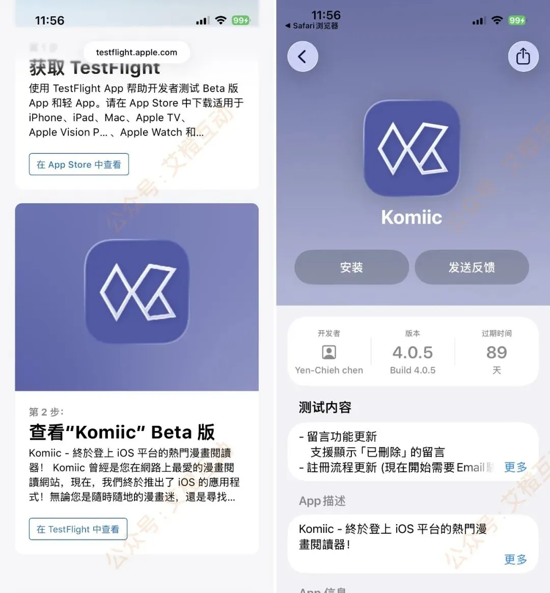 2,这时会跳转到 TestFlight 中,点击安装。