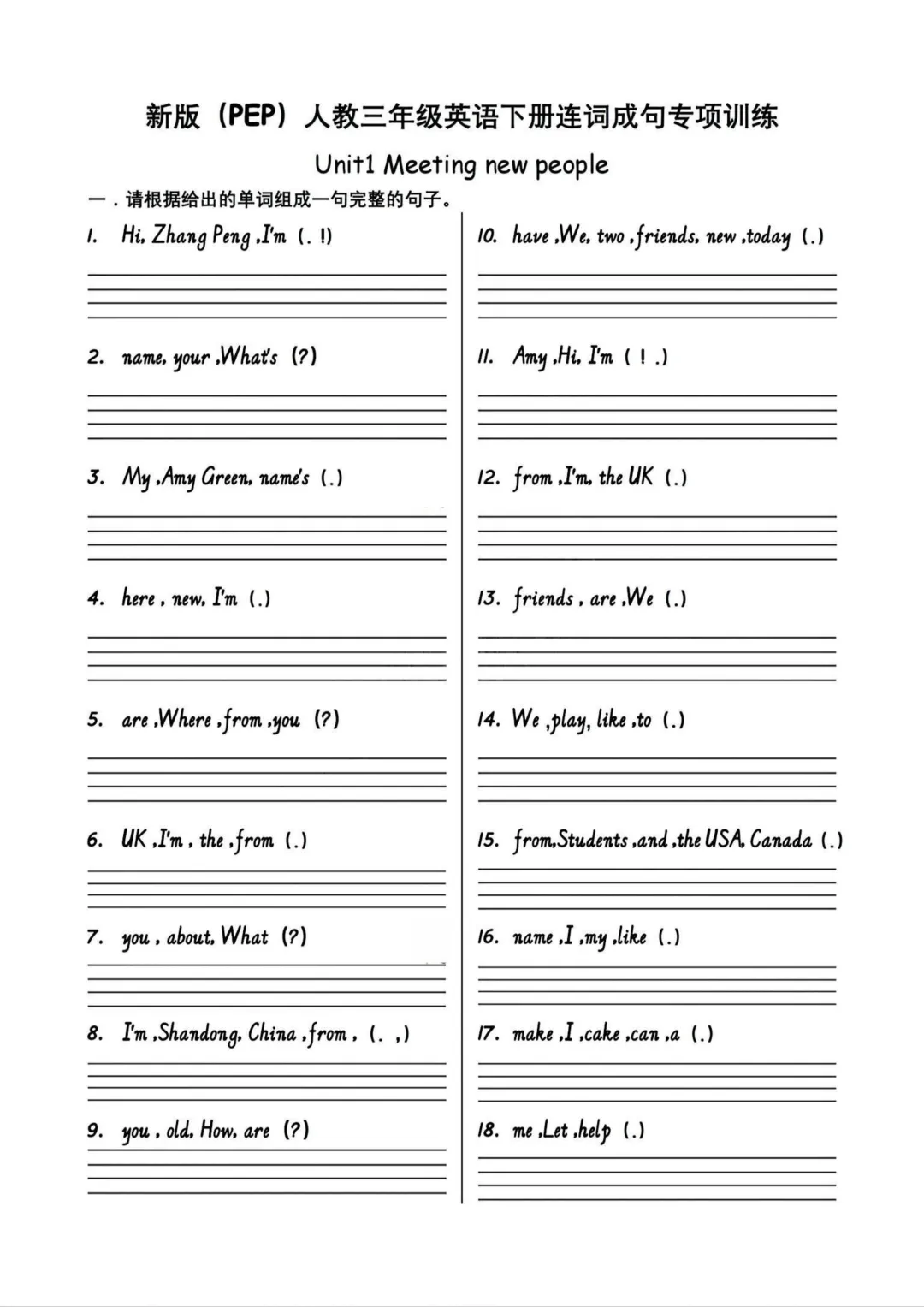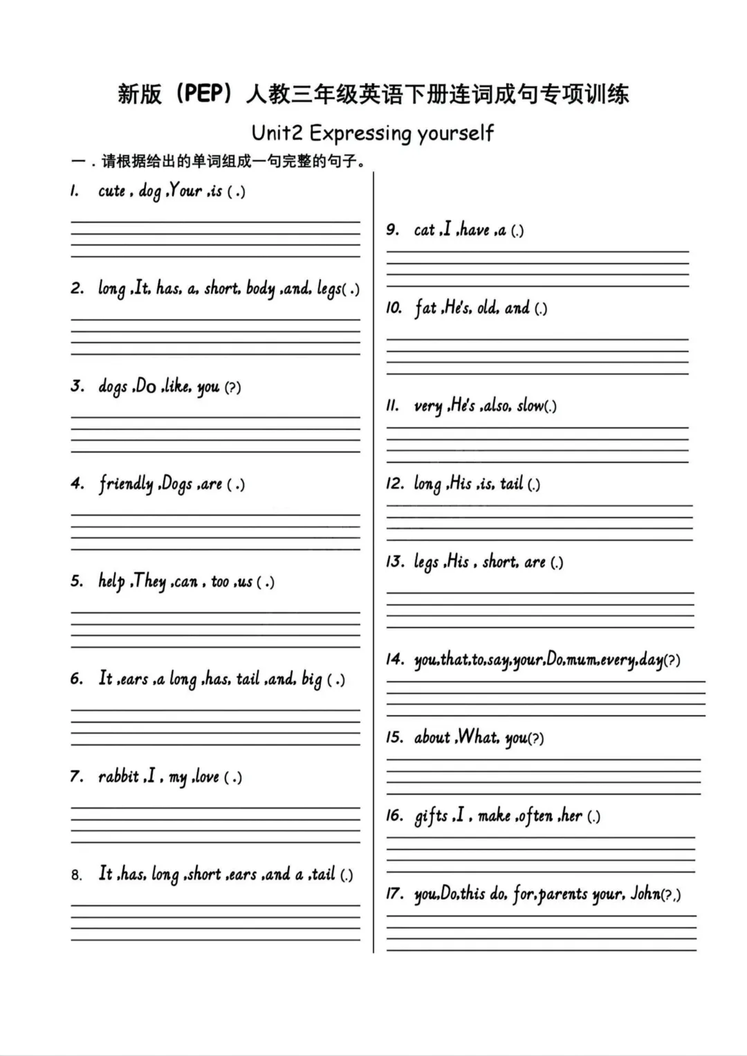 可下载!三年级下册 PEP 英语连词成句专项练习,老师都推荐(温馨提示;因篇幅有限,仅展示部分内容。(文末有完整版电子版领取方式) 领取“完整电子版”方法: ①:点一点右下角的“赞”和“在看”,感谢! ②:长按识别二微码,保存到网盘,马上就可以查看/打印资料。