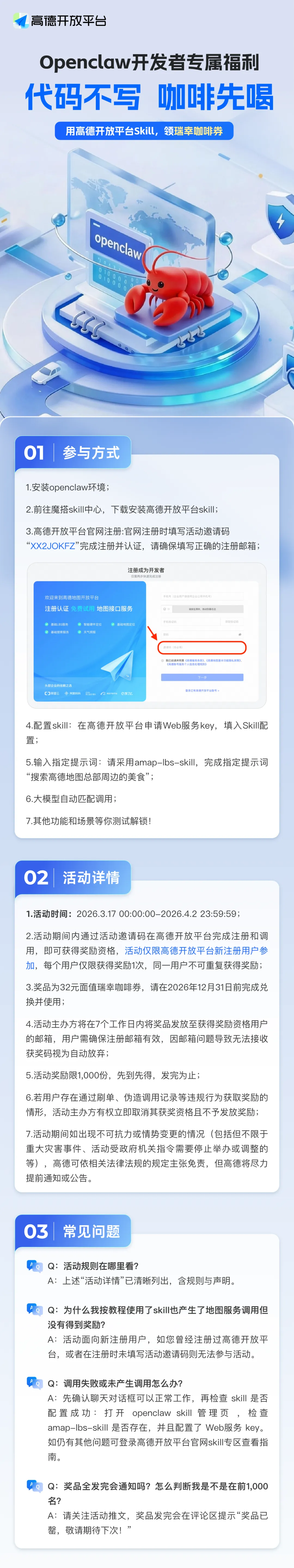 高德开放平台「OpenClaw开发者专属福利」正式开启。