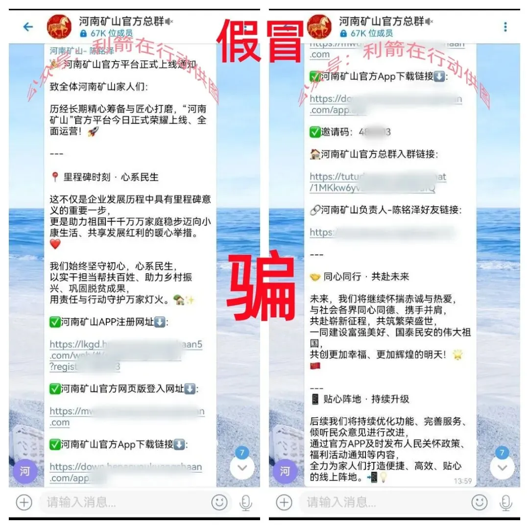 3月25日假冒河南省矿山起重机有限公司的“河南矿山”APP出现在网络,该项目宣传“办理工作证,实名认证就给88万元,免费发房子”,让参与者注册“河南矿山”APP,拉人注册还要给奖励...........这是假冒的,网站网址不是河南省矿山起重机有限公司的。