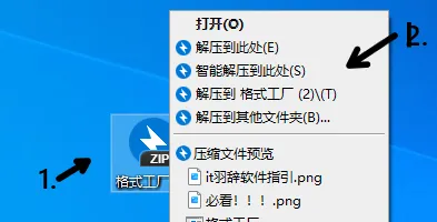 1.点击软件压缩包,2.右键解压