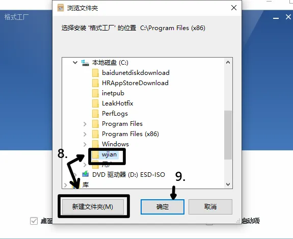 8.新建文件夹并更改安装位置,9.点击确定