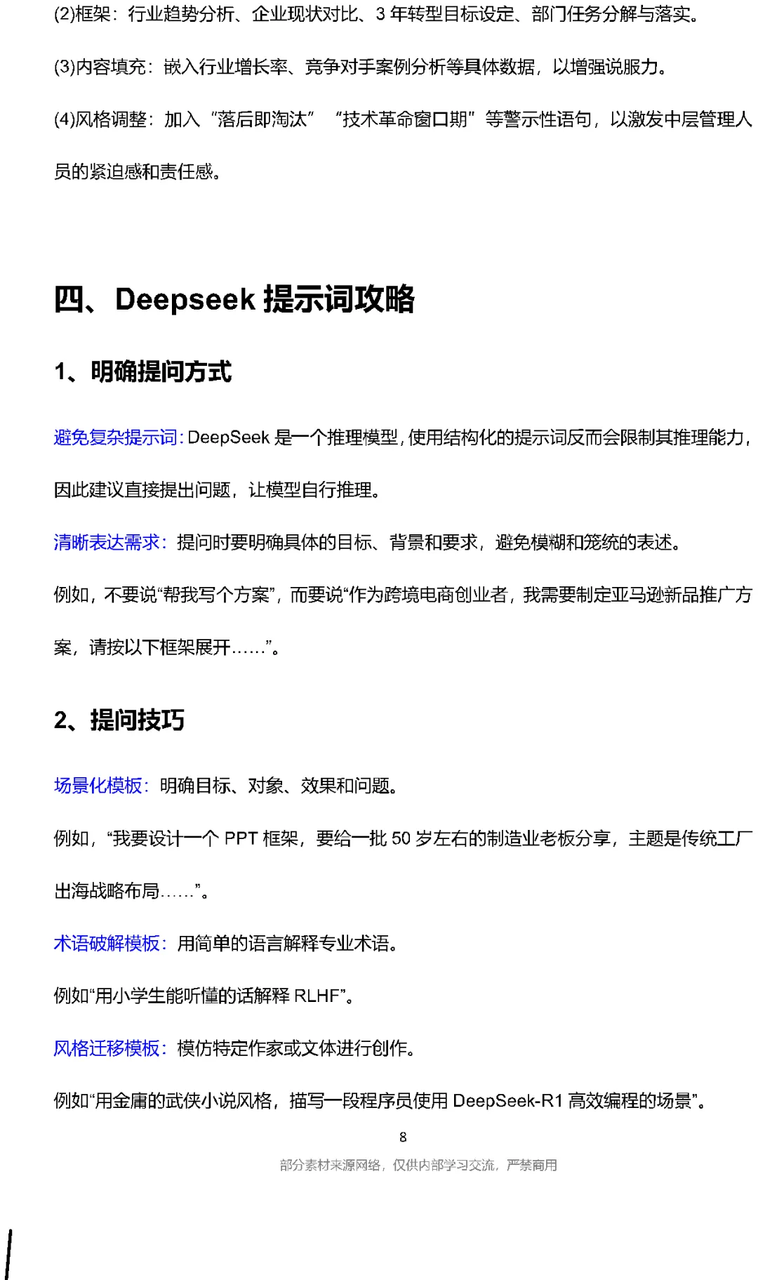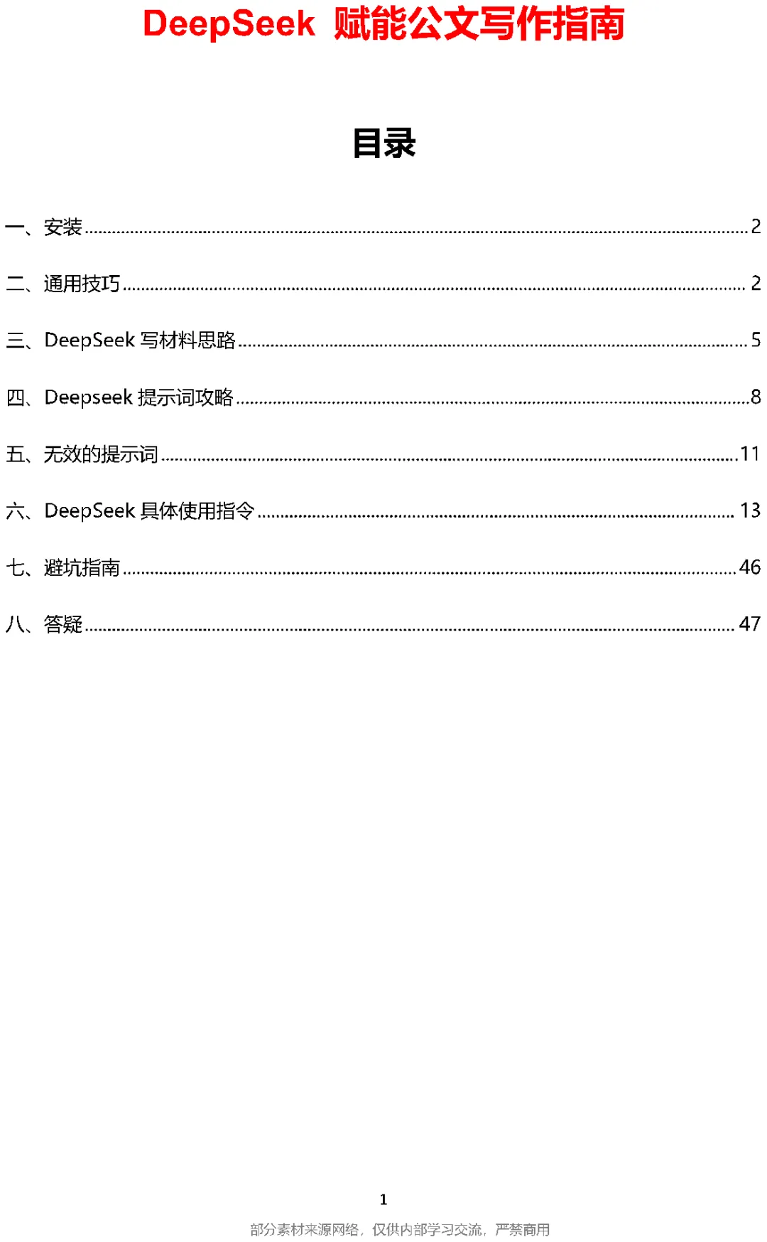 DeepSeek赋能公文写作指南(PDF模板)本资料为《DeepSeek赋能公文写作指南(PDF模板)》,欢迎加入会员领取!(查看领取方式:关注本公众号-->后台回复“领取模板”)::: 资料整理不易,请转发集赞或加入会员领取 :::声明:本资料来源于互联网,版权归原作者所有。如有侵犯您的版权,请联系25198734@qq.com,我们将立即处理。觉得不错,请点“赞”或者点击“在看”,谢谢↓↓↓