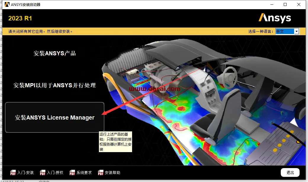 3、点击【安装ANSYS License Manager】