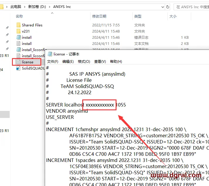15、在软件安装目录里面选择license文件打开,找到xxxxxxxxxx更改