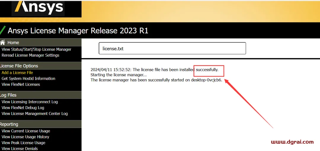 12、自动在浏览器上打开Ansys License Manager Release 2023 R1页面,放在一旁先不要管它