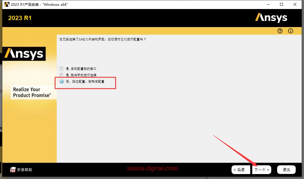 25、是否配置CAD几何结构界面,点击【否,跳过配置。我稍后配置】,然后下一个