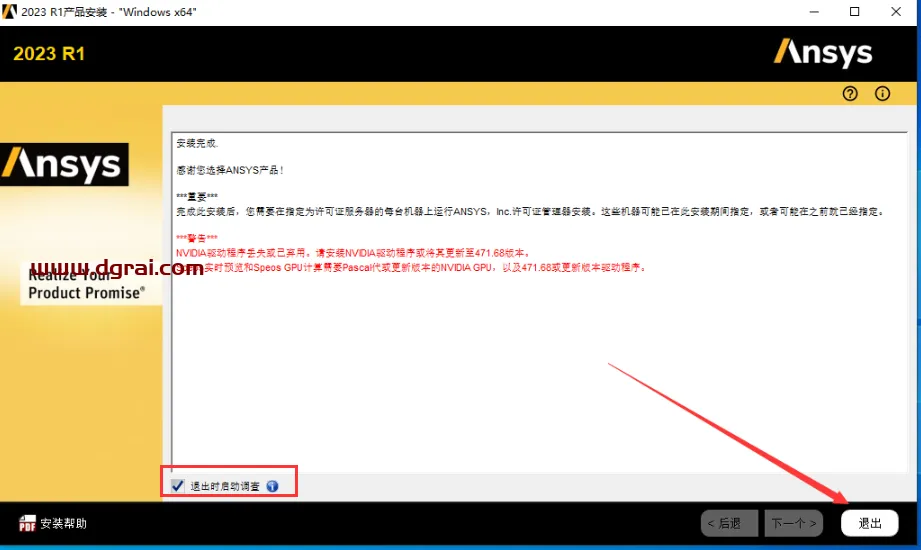 29、将【退出时启动调查】取消勾选,然后点击退出
