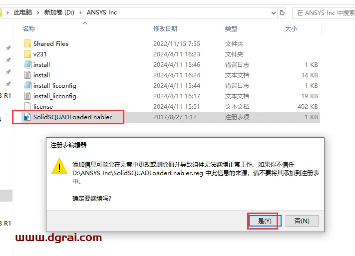 31、在软件安装目录下,双击SolidSQUADLoaderEnabler.reg,点击是