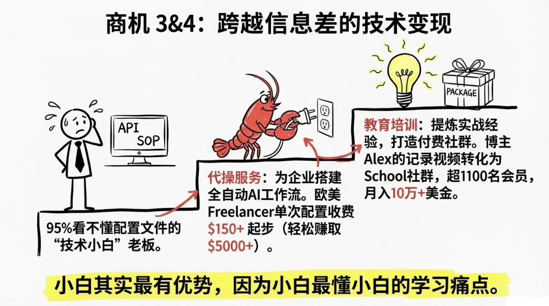 代操服务:配置AI Agent有技术门槛,帮企业搭建全自动化的AI工作流,这种咨询服务一单就能收几千美金。