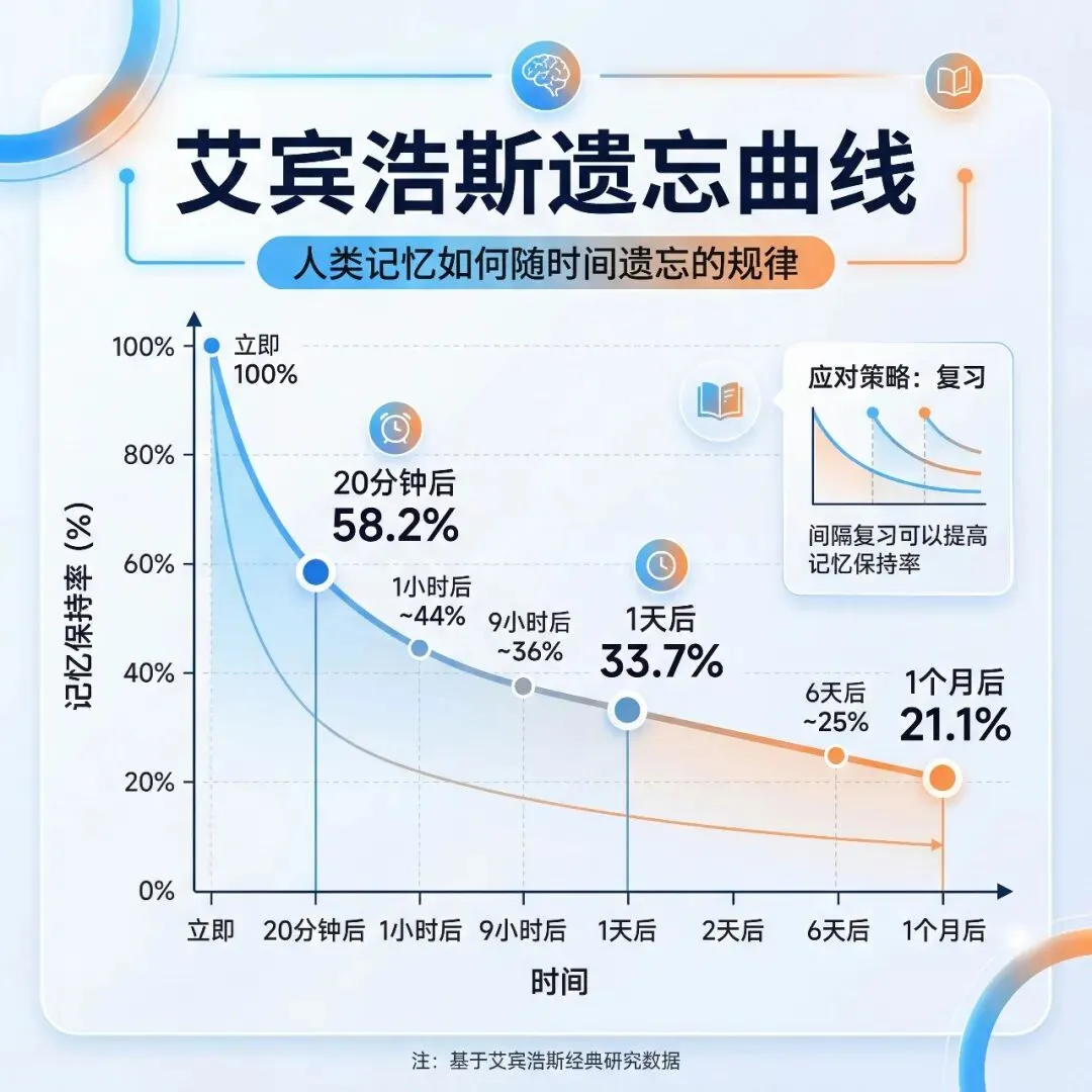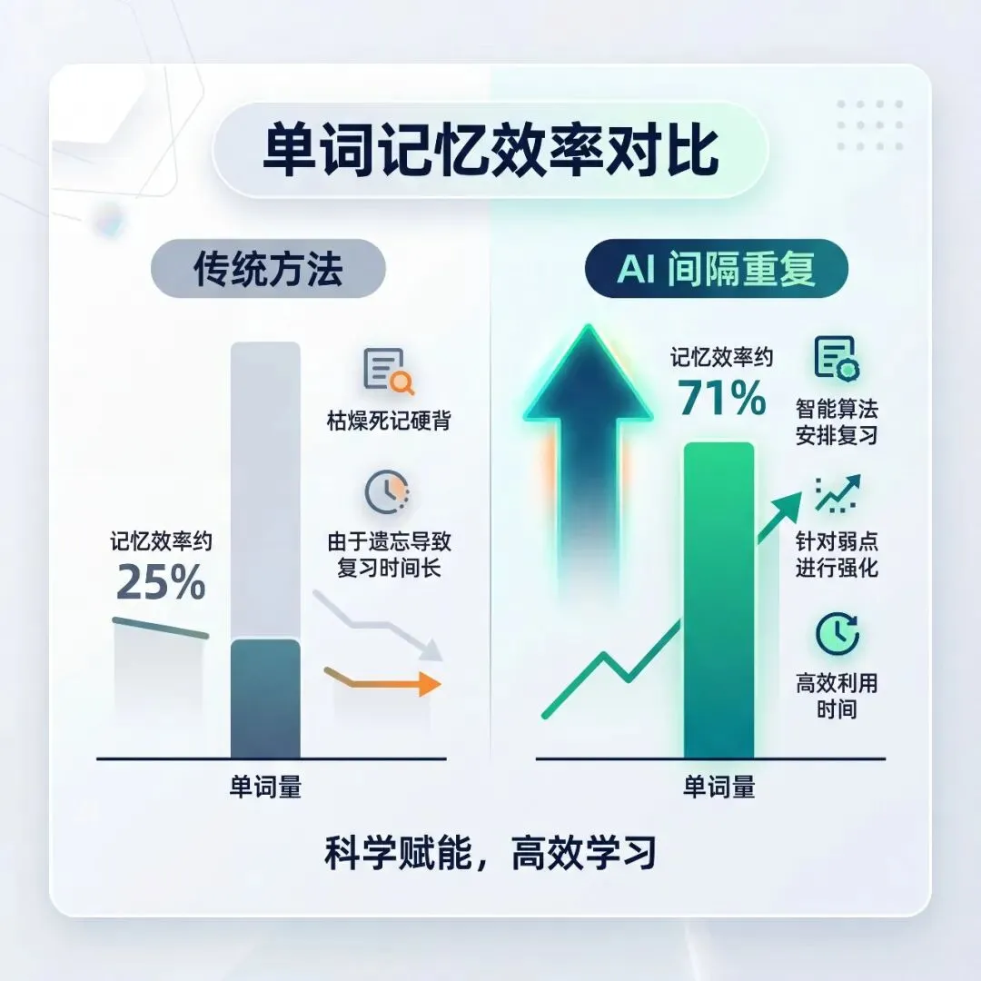 有研究表明,使用间隔重复方法,词汇记忆保持率可以从传统的20%-30%提升到60%-80%。