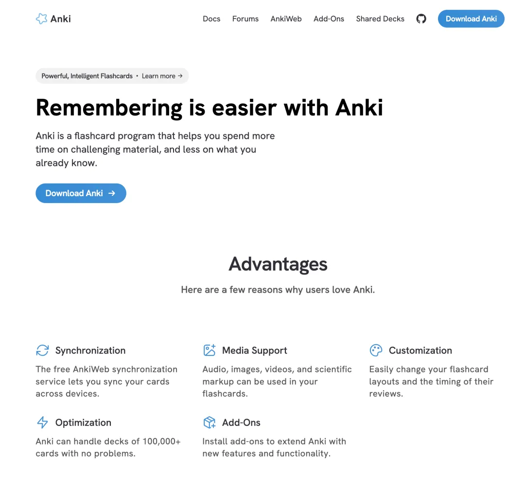 Anki网站页面