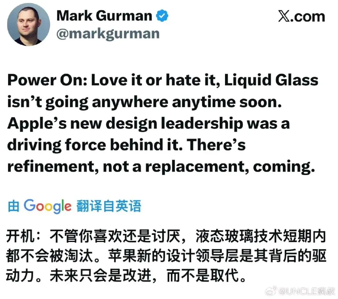 外观这一块,液态玻璃的那套设定还在,视觉上那种通透的层叠感会保留,一个全局滑动条会加进来,特效强度你自己拉,动画看着花,手感慢,就把它降一降,团队的侧重点往里收,精力压到底层,冗余代码清掉,内存管理重写,老问题一点点修,系统体积往下压,续航和流畅度往上拉,这条线很像当年的 macOS Snow Leopard,做得扎实,老机型也能多用一阵,用户手里的感知落到每天的使用里。