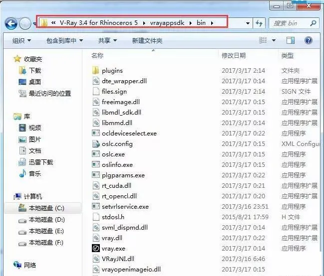 12.打开图示路径【C:\Program Files\Chaos Group\V-Ray\V-Ray 3.4 for Rhinoceros5\vrayappsdk\bin】。