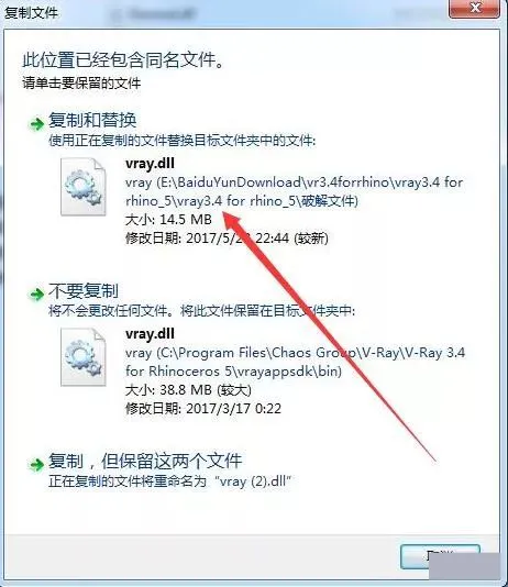 13.粘贴刚刚复制的破解文件vray,选择复制和替换。