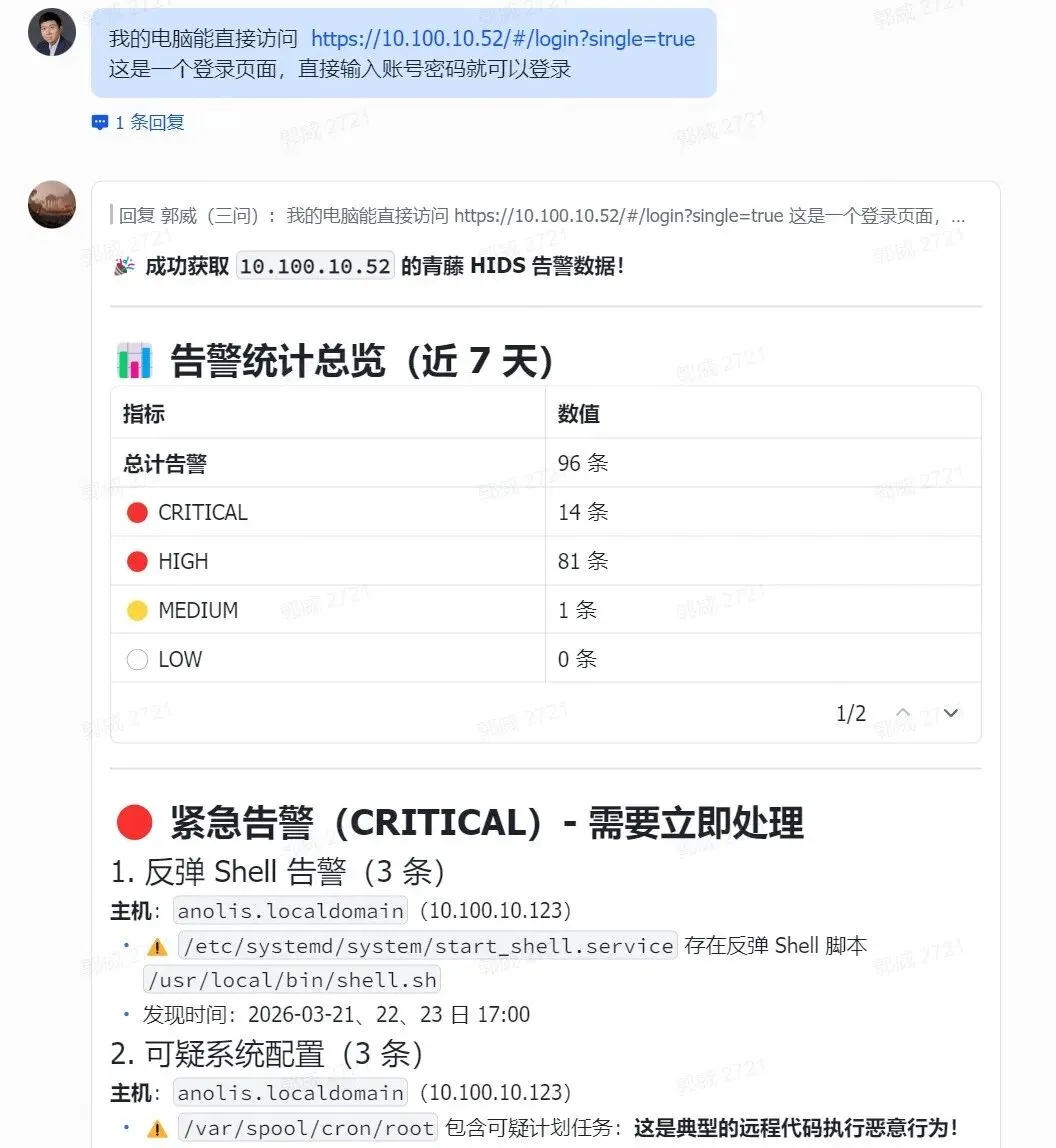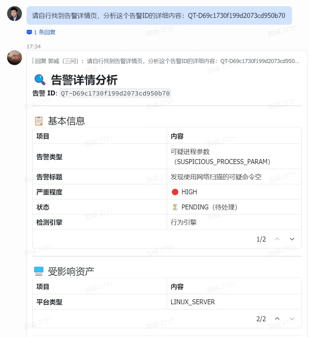 第三步,将获取的详情,作为上下文给到主机安全智能体进行研判