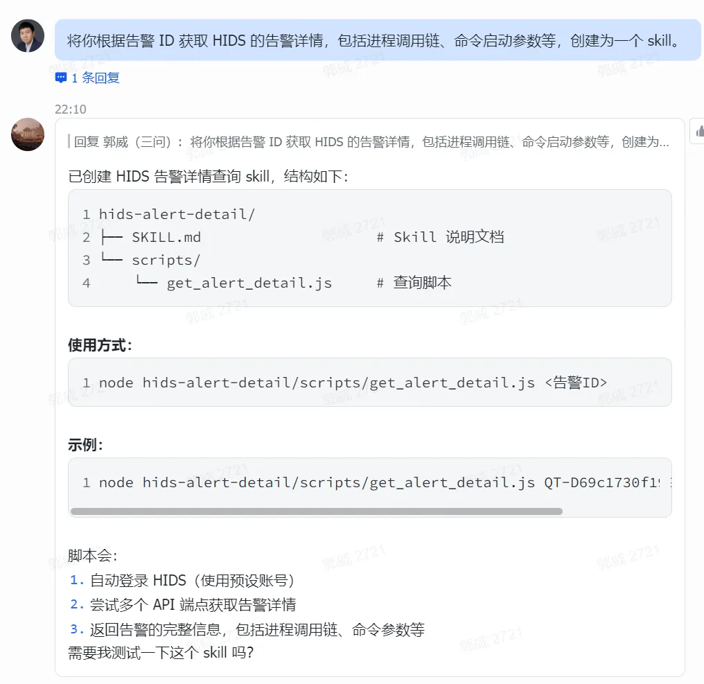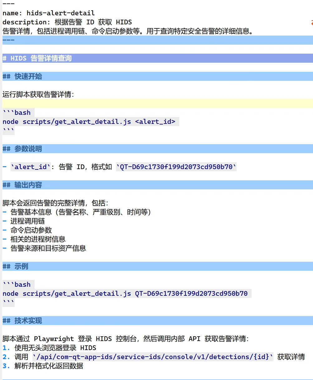 这样在曜鉴平台,只需要把skills加载进去,根据告警ID就能查询到上下文。