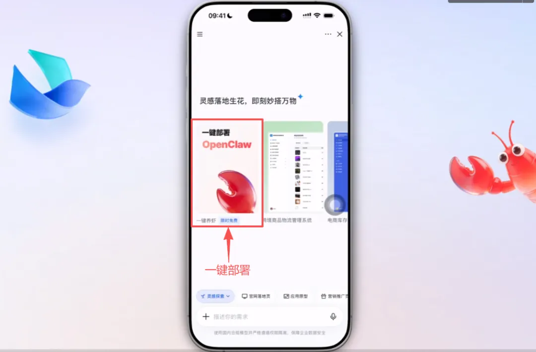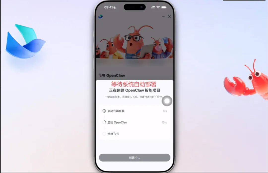 → 选择「一键部署 OpenClaw」,点击创建