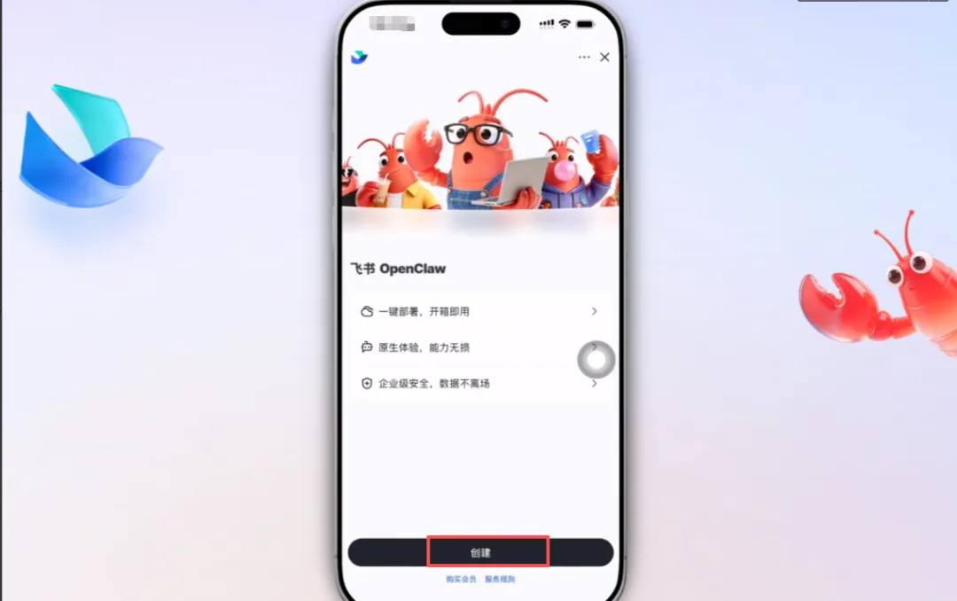 搭建的方式是通过飞书妙搭来实现,既可以电脑部署,也可以在手机直接部署,电脑部署直接打开https://openclaw.feishu.cn/ (别忘记提前用手机号直接注册飞书账号)跟着提示即可,这里主要讲下手机端的部署过程。
