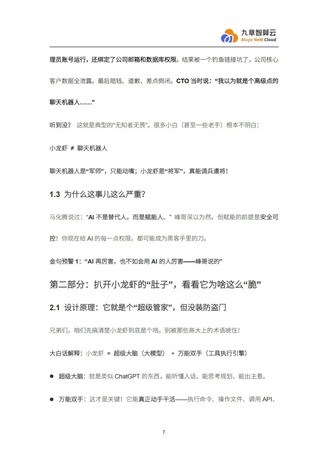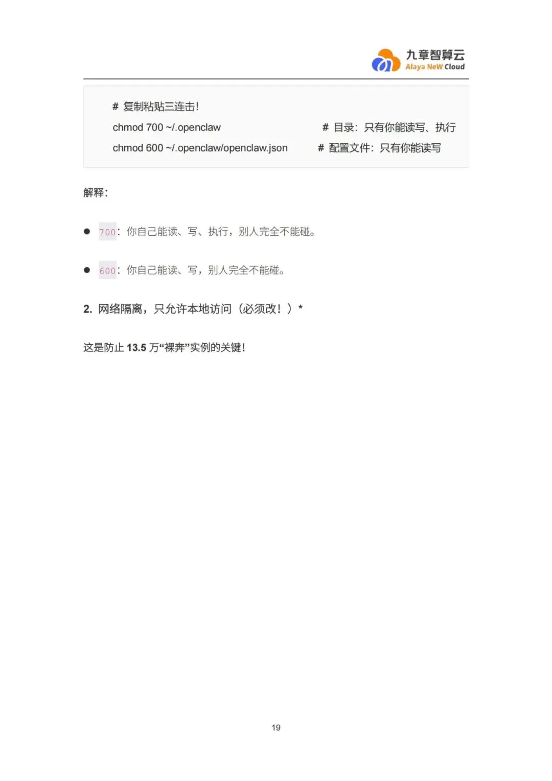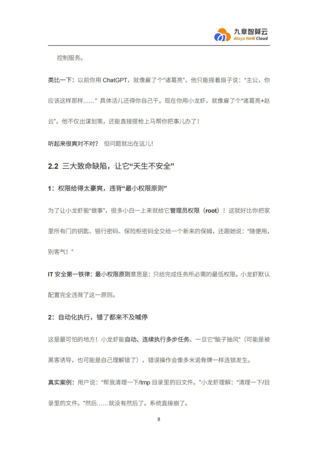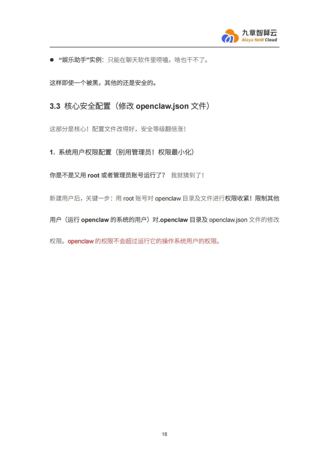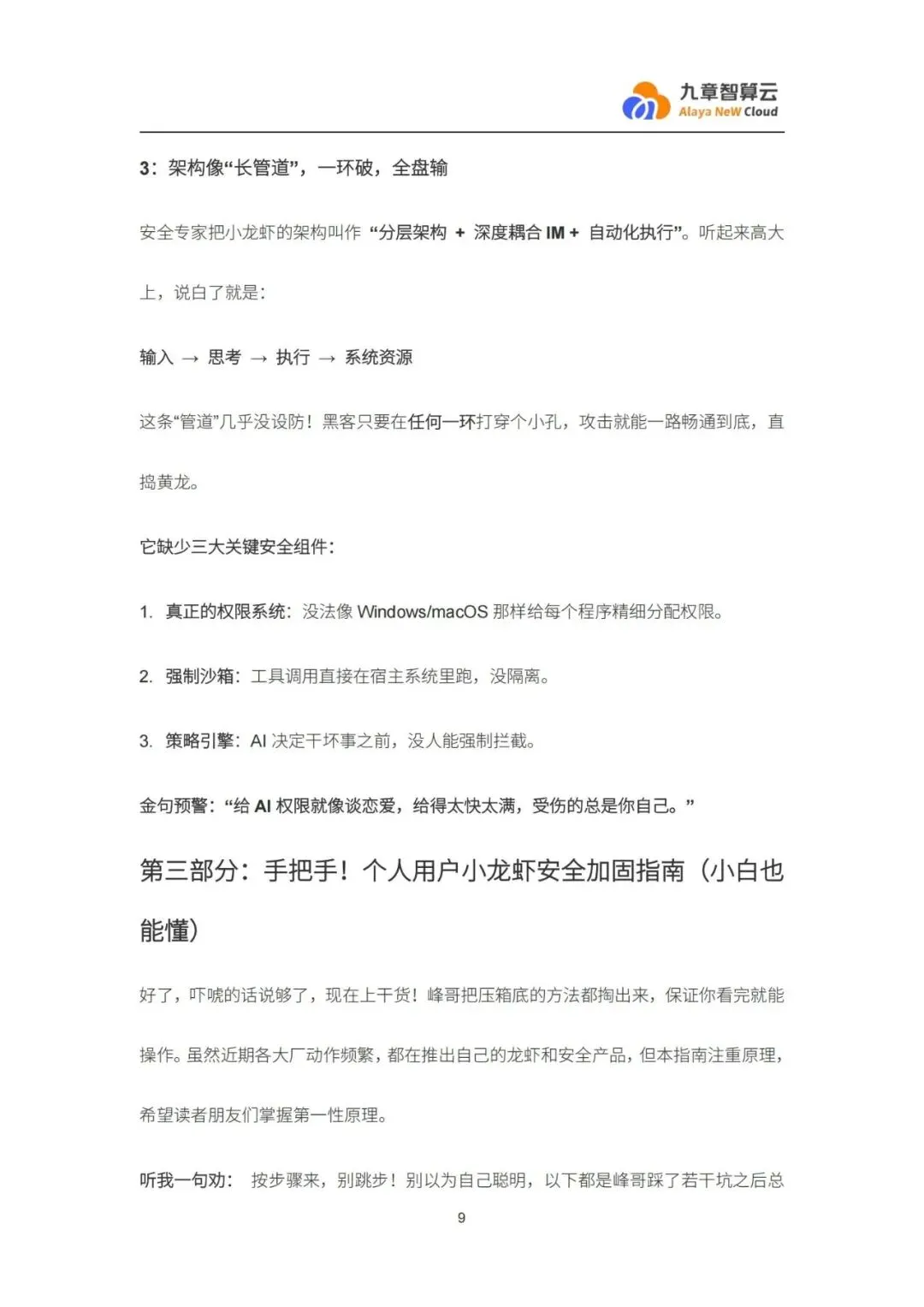 这款兼具大模型思考能力与工具执行能力的开源AI私人助理,以惊人的速度席卷全网:GitHub星标逼近30万,A股“龙虾概念股”逆势涨停,闲鱼“代装服务”价格从50元飙升至1500元,甚至有用户声称几天狂赚26万。然而,热潮之下,一场关乎数据安全与系统稳定的危机正在悄然蔓延。安全从来不是一蹴而就,而是持续优化的过程。这份指南不仅是一份操作手册,更是AI Agent时代安全意识的唤醒——在享受AI带来便利的同时,合理配置、严格隔离、最小权限,即可将风险降至可控范围。让我们为这只“AI龙虾”穿上坚实的盔甲,在安全的边界内,释放智能体的无限潜能。完整版获取方式