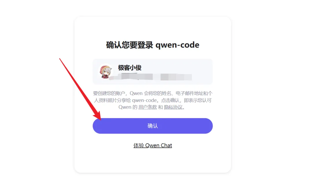 稍等一会,浏览器会自动打开当时设置对应模型的认证窗口, 这里我用的Qwen