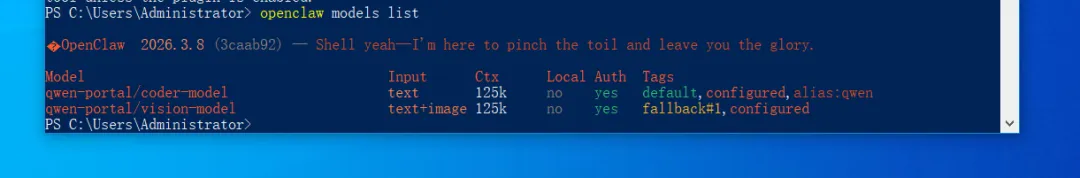 同时注意, qwen-portal/coder-model 和 qwen-portal/vision-model 是 OpenClaw 内部的别名,它们实际映射到阿里云百炼里的 qwen3.5-flash/qwen3.5-plus 这类通义千问模型,所以你在百炼里看不到这两个名字!