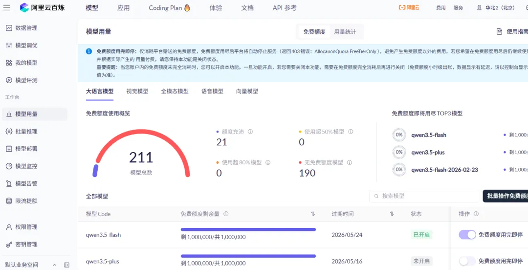 地址: https://bailian.console.aliyun.com/