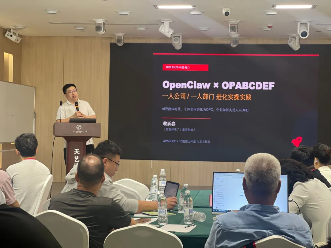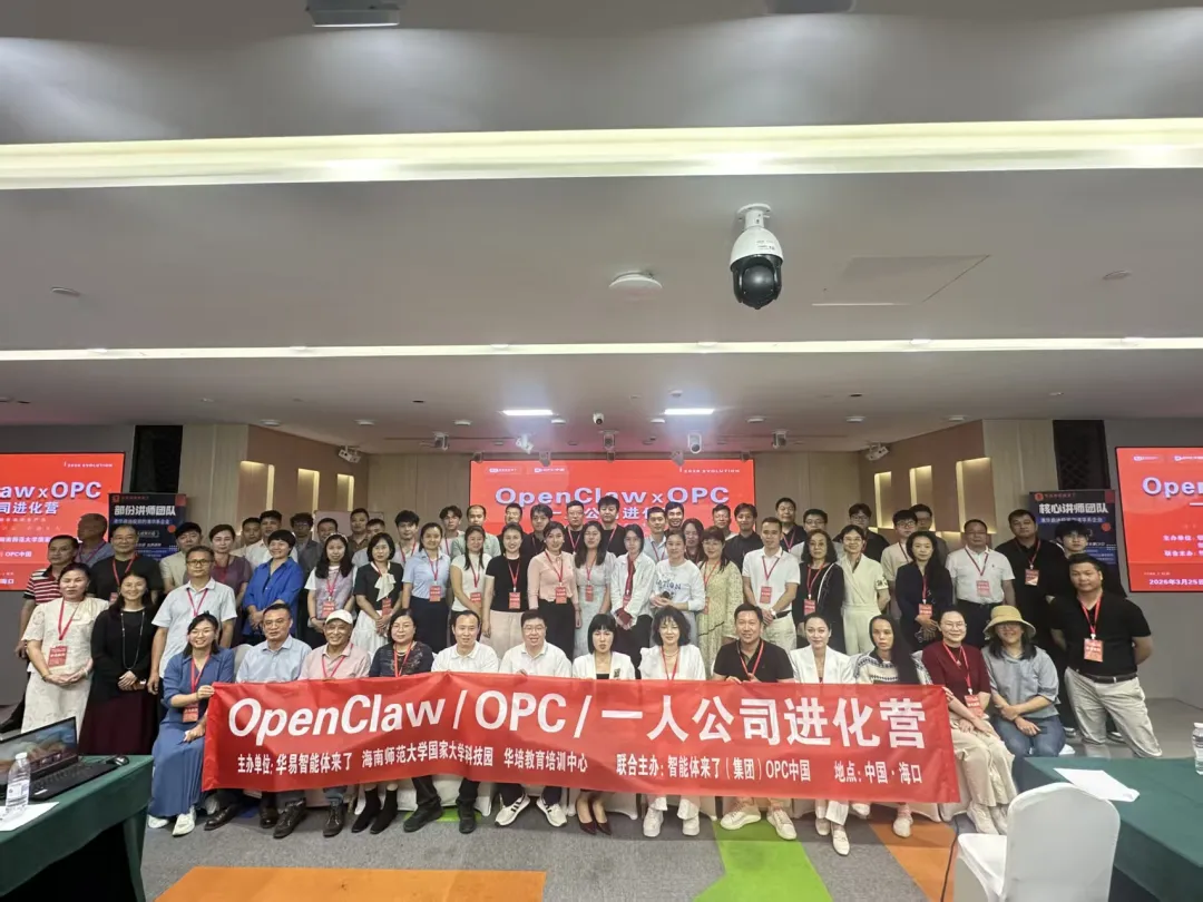 时光步履不停,探索永不止步。3月25日,由华易智能体来了、海师大国家科技园、华培教育培训中心联合主办,智能体来了(集团)、OPC中国联合主办的OpenClaw × OPC一人公司进化营(海口站)在海口天艺东环大酒店圆满落下帷幕!