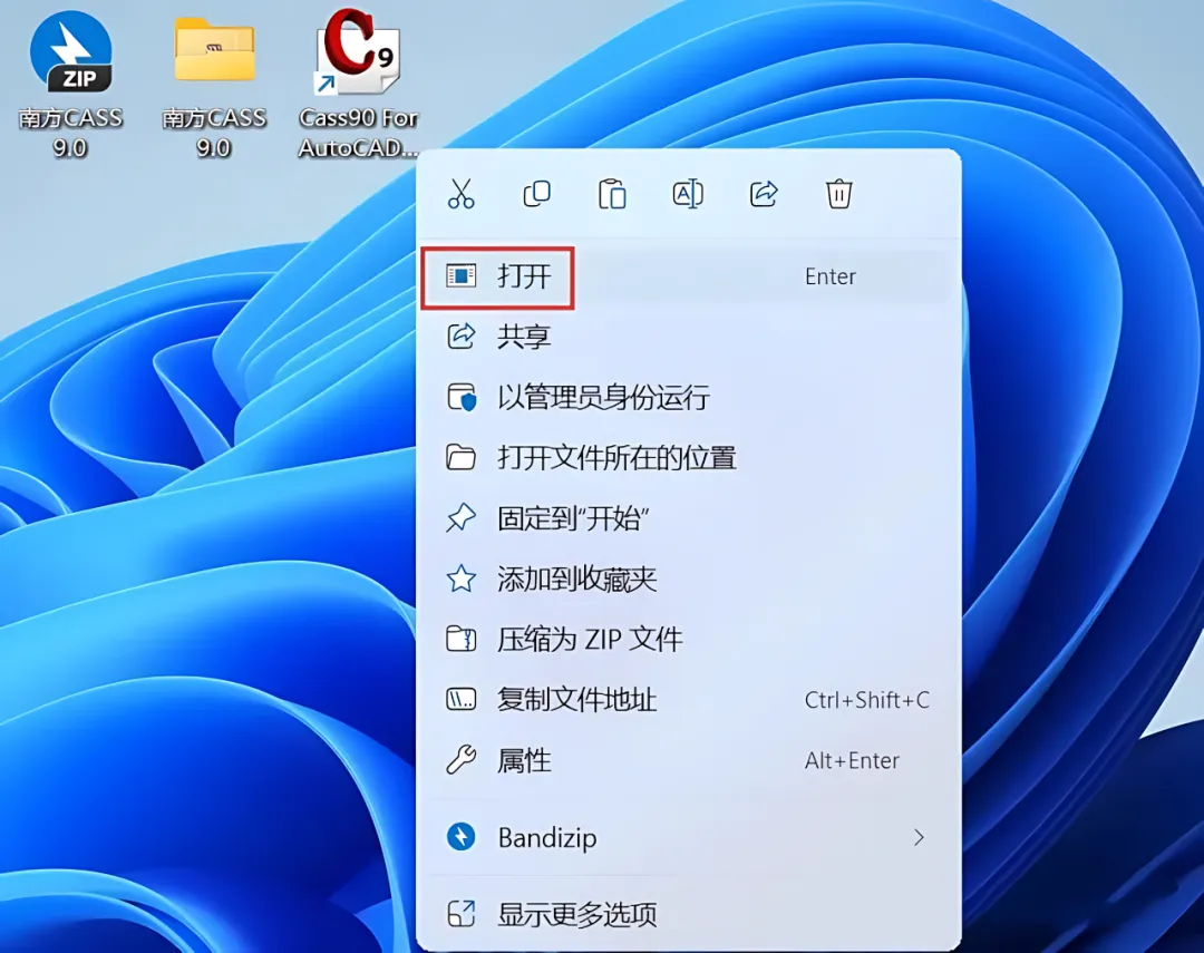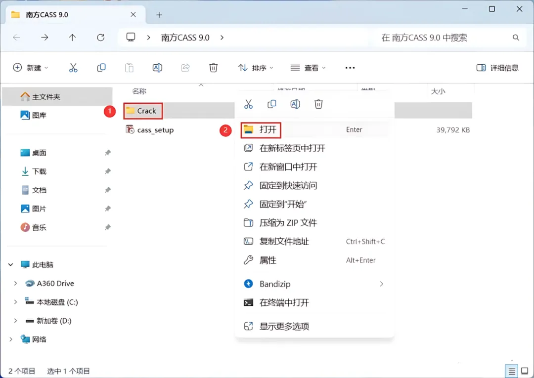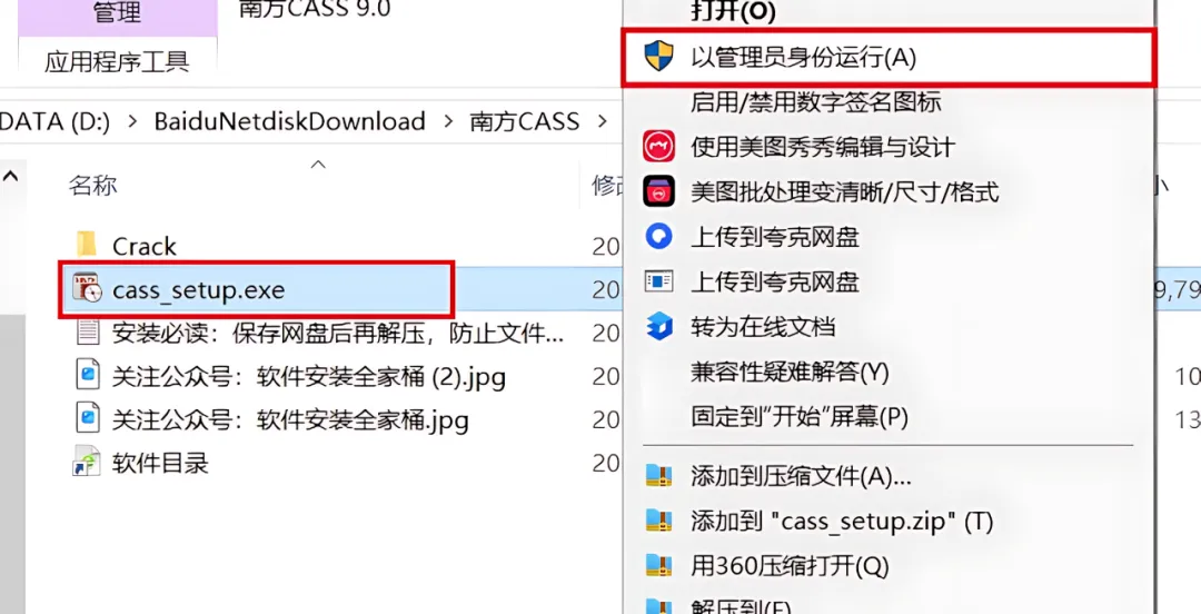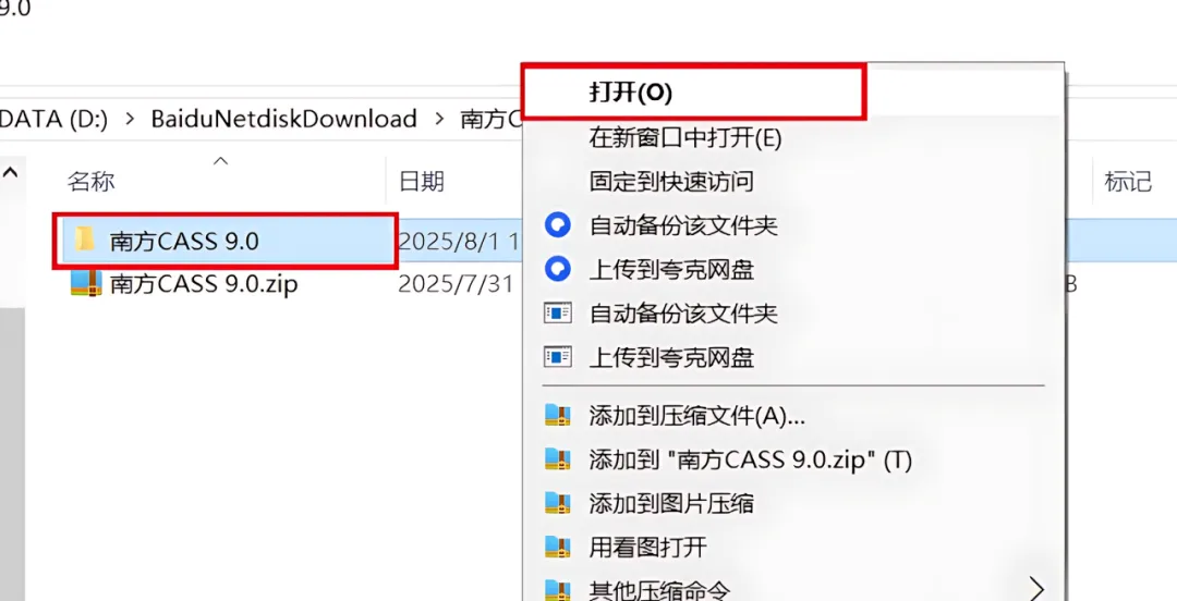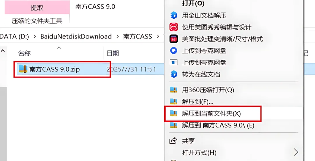 1、下载南方CASS 9.0软件安装包到电脑上,右键选择【解压到当前文件夹】