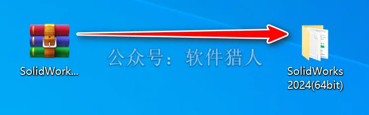 1.关注本公众号后回复“solidworks”,即可获取最新安装教程(页面里附有下载链接,若失效会维护),小编将下载好的压缩包移动到桌面并右键解压到当前位置,方便安装后即将安装包删除。(没有解压软件?点我安装!)