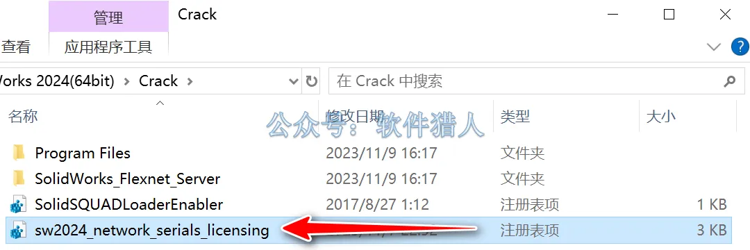 27.回到打开的【SolidWorks2024(64bit)】安装包文件夹下的【Crack】文件夹,双击运行【SolidSQUADLoaderEnabler】。