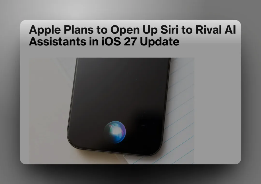 据 Bloomberg 彭博社最新报道,苹果计划在 iOS 27 中引入"扩展"机制,让用户可以在 Siri 中选择调用不同的 AI 服务。这意味着目前 OpenAI 享有的独家合作地位将被终结。